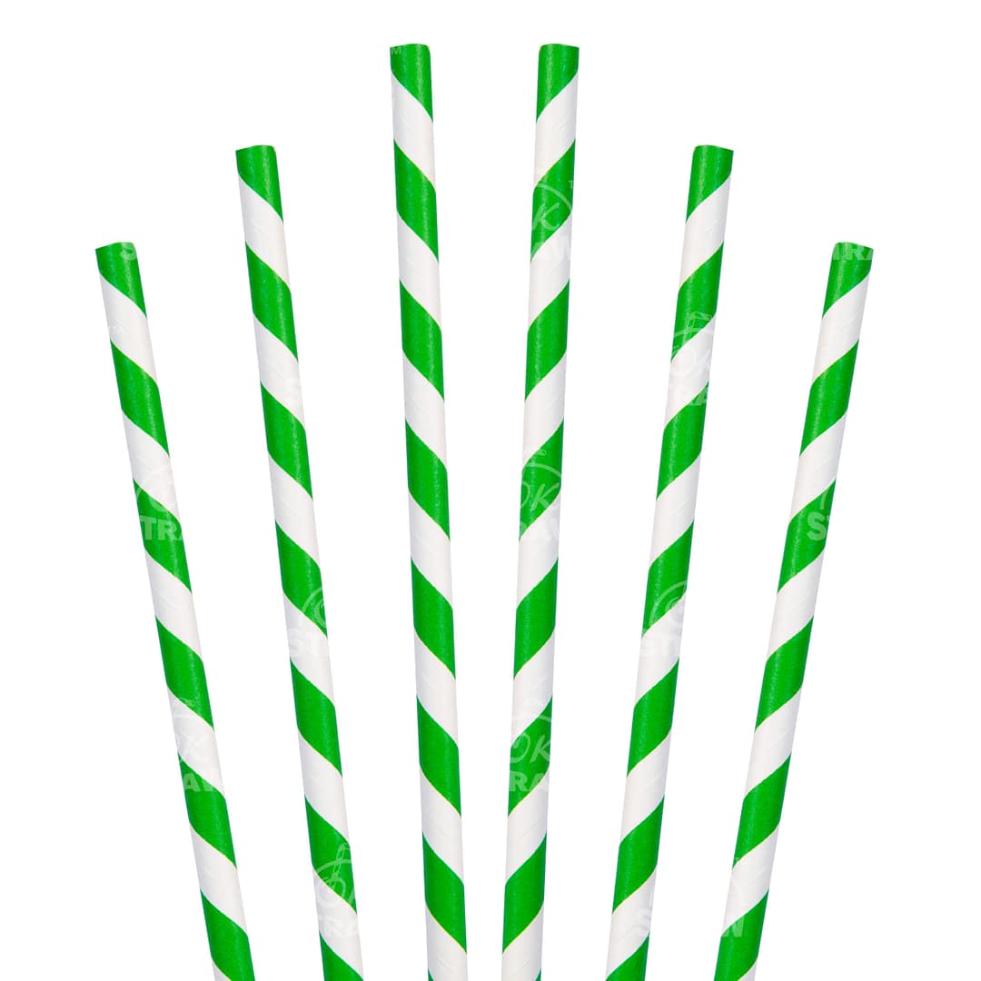 OkStraw’s Restaurant Supply Store offers a 7.75″ green stripe, jumbo straw for drinks. Our straw engineers built a 1/4″ wide diameter jumbo straw – perfect for drink service with 16oz cocktail glasses. Be bold and design a drink menu that is insta-friendly using our colorful paper drinking straws; because OkStraw’s bulk restaurant supply is both stylish and sustainable!